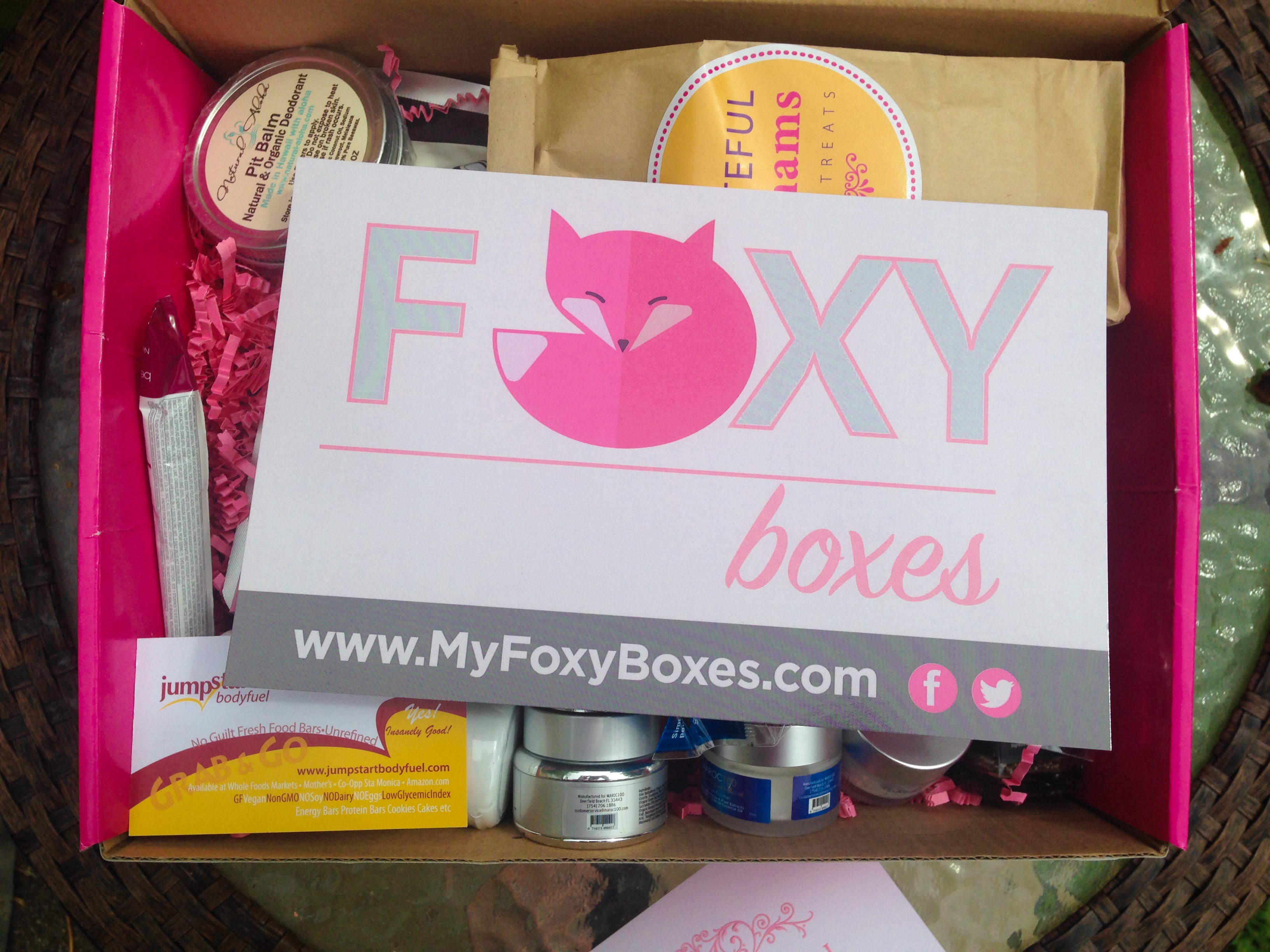 Foxy Boxes was Created by Jess Ovalle Fisher and Β inspired by her years of experience in the fitness and heath world.. The box focuses on Healthy products that help you perform better and reach your athletic goals! It is a monthly subscription box and Prices depend on what type of box or plan you choose, for a monthly Vegan box it is $29.99Β Screen Shot 2015-09-01 at 11.09.43 AM